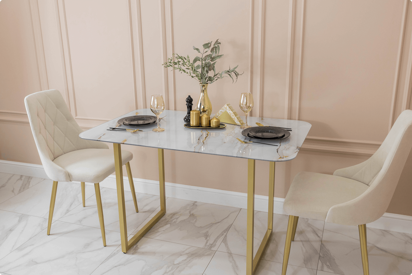 Узнайте про преимущества других материалов столешниц для обеденных столов в наших статьях (столешница из закаленного стекла, столешница из шпона дуба, столешница из керамогранита).
